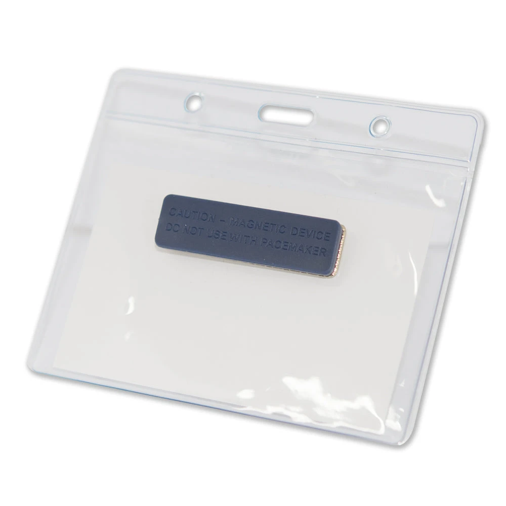 The Magnetic Name Badge with Pacemaker Warning and Clear Horizontal Plastic ID Card Holder is ideal for professionals who want a secure and convenient way of displaying their identification.