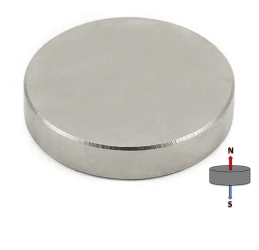 This Disc magnet has the strong magnetic power of Neodymium and proportions that are best suited to commercial applications or heavy-duty holding requirements in the workplace. It can suspend items of substantial weight, ranging up to almost 40kg. This powerful circular rare earth magnet will easily hold thick material or several sheets of card to a metal surface. Careless handling when attaching the strong magnet should be avoided as it may result in damage to the magnet or cause injury to the user.