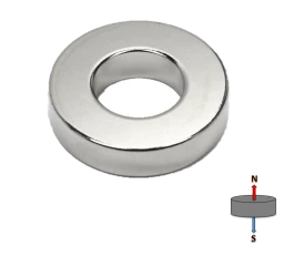 This neodymium magnetic ring has an outer diameter of 50mm, an inner diameter of 20mm and the height of 5mm. It is identified by the AMF magnet part number R-OD50H5ID20-N35.