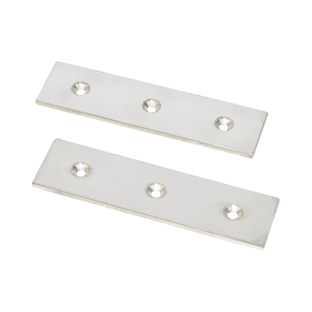 This pair of rectangular Stainless-Steel 304 bars are 150mm long, 40mm wide and 5mm thick. Each bar consists of 3 x M6 countersunk centre holes spaced at 50mmm apart. Fixing screws are included to build your own Grate Magnet. Separator Bar magnets are sold separately.Â