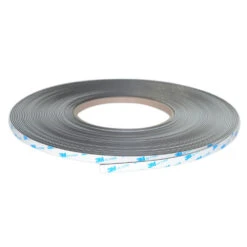 This self adhesive magnetic tape has a width of 12.5mm and a thickness of .8mm. The roll comes in a length of 30 metres. Made from Strontium or Barium ferrite powder within a polymer matrix, our self-adhesive magnetic tape provides good demagnetization resistance & reasonable resistance to chemical agents. Identified by the AMF Magnetics part number 59021.