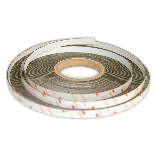 This Self-Adhesive White Non-Magnetic Steel Tape has a width of 12.5mm, a thickness of 1mm and comes in a 30m roll. One side of this tape has a matte white PVC coating and the other side has 3M Adhesive. It is identified by the AMF Magnet Part Number 59059.